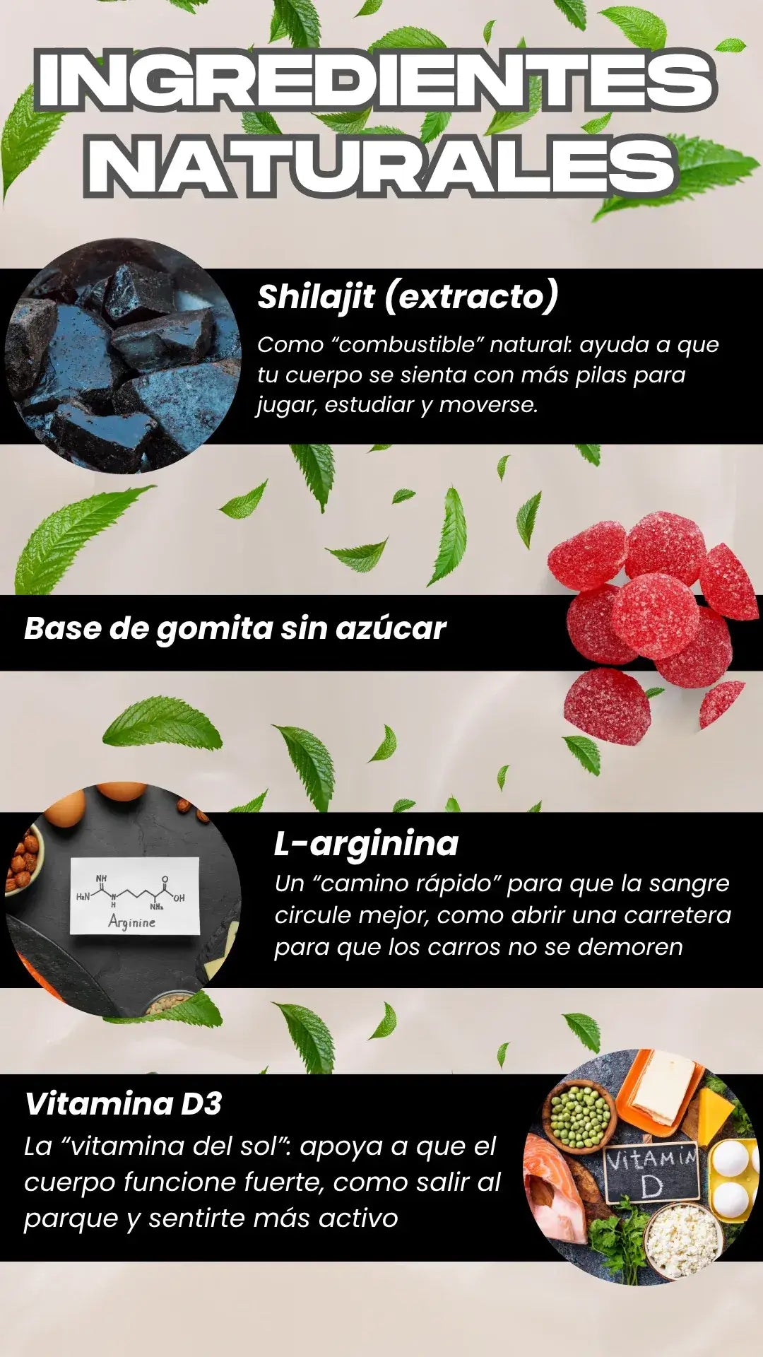 Combina ingredientes para apoyar vitalidad, energía celular y bienestar masculino dentro de un estilo de vida activo. La mezcla busca acompañar el metabolismo, el manejo del estrés cotidiano y la recuperación tras la jornada, con ingredientes de origen vegetal.
